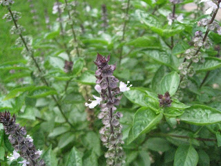 We grow many types of herbs in our garden that my mom uses for cooking. These two pictures are of basil. We have 3 types of basil in our back yard. We also grow rosemary and thyme.